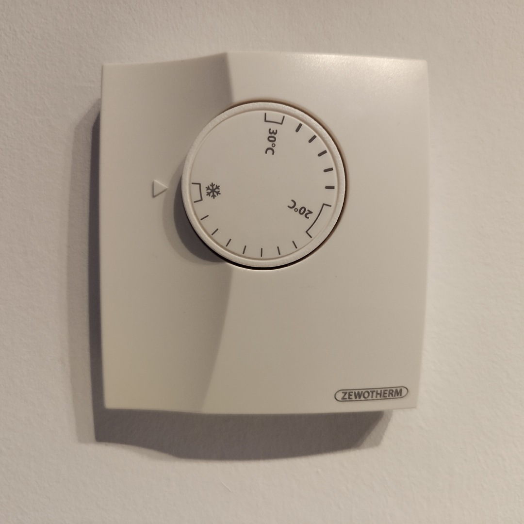 Wir haben im Haus überall Fußbodenheizung. Die einzelnen Herzkreisläufe werden über Raumthermostate angesteuert.