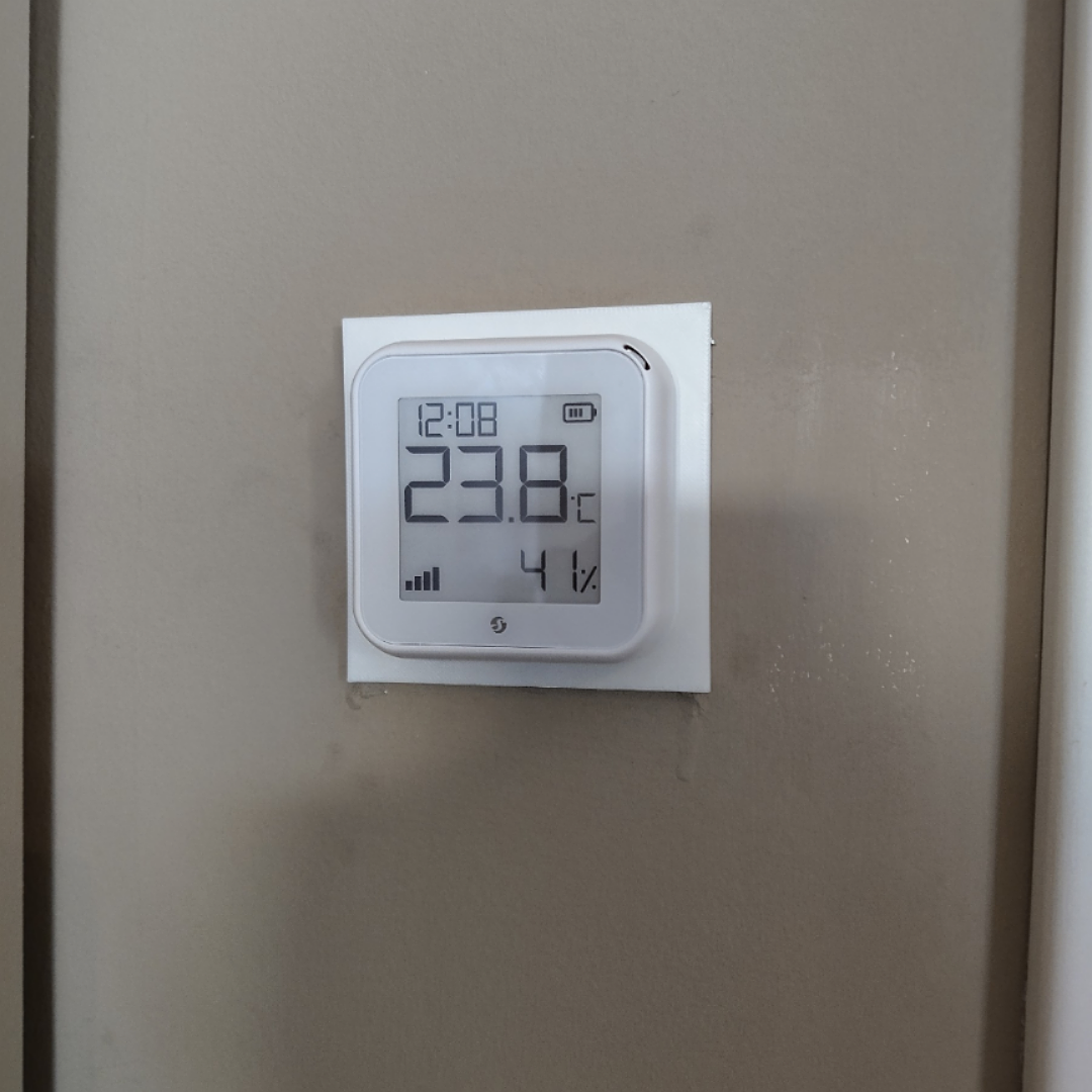 Zur Temperaturanzeigen nutze ich einen Shelly H&T Gen3 mit Display. Zum Aufschrauben auf die Dose, habe ich einen Adapter gedruckt, den es im Netz gab. Sieht sehr gut aus.